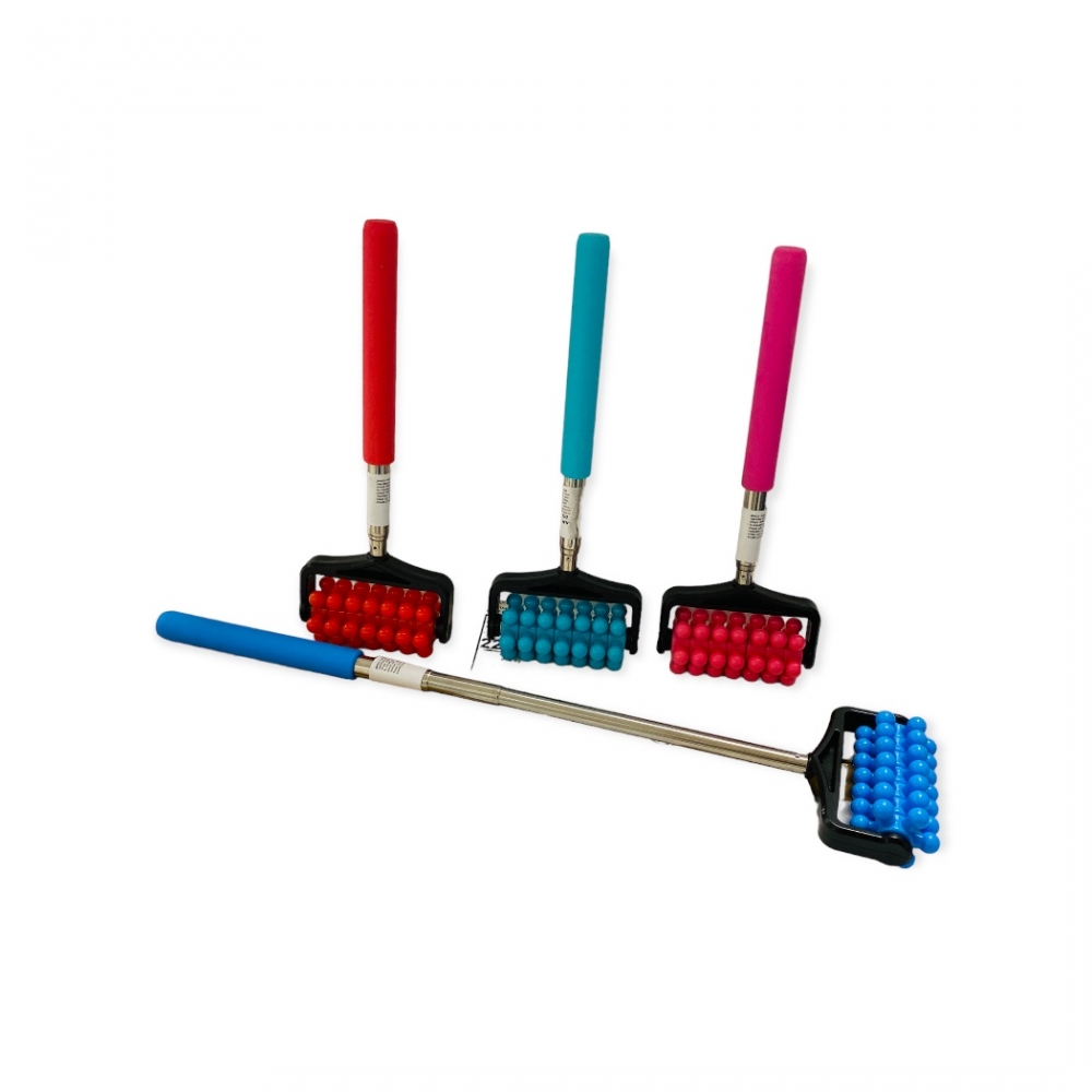 Massasjerulle som kan trekkes ut til 59 centimeter, Den har flere mindre kuler som er med på å løse opp ømme og stive punkter på kroppen. 21-59 cm. Ass. farger. Kommer i display a 24 stk, men kan kjøpes enkeltvis