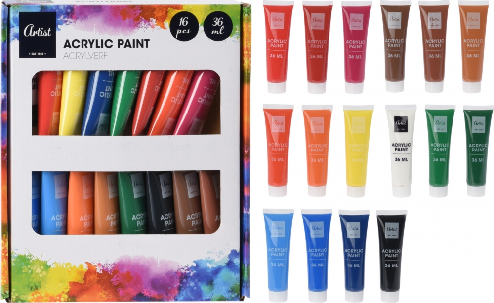 Akrylmaling 16 stk ass. farger (Innerkartong 6 stk)