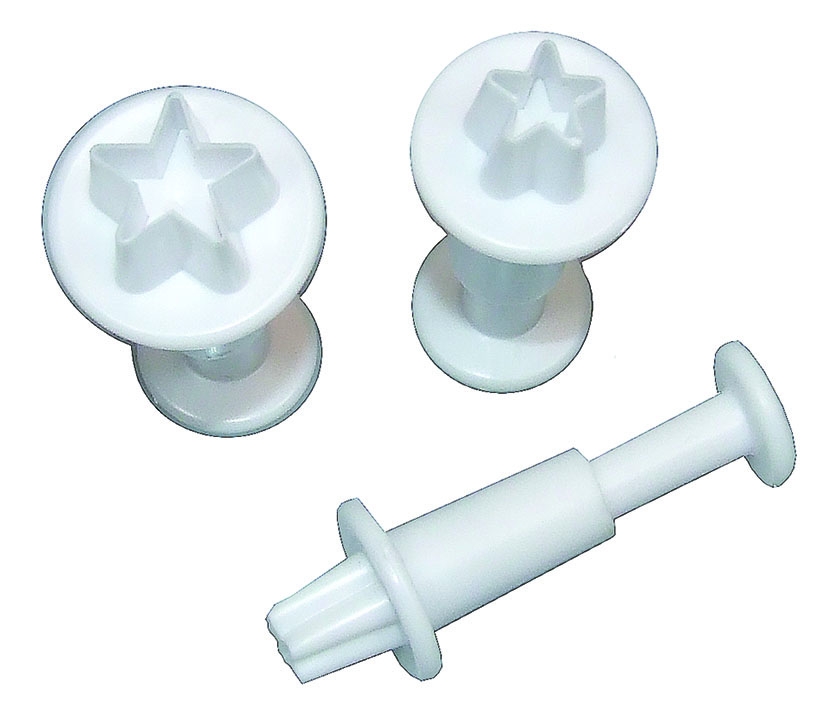 Utstikksform i 3 forskjellige størrelser, med ejektor, som gjør det enkelt å trykke ut figuren. Egner seg til marsipan og annet. Gir flotte stjernemønster!