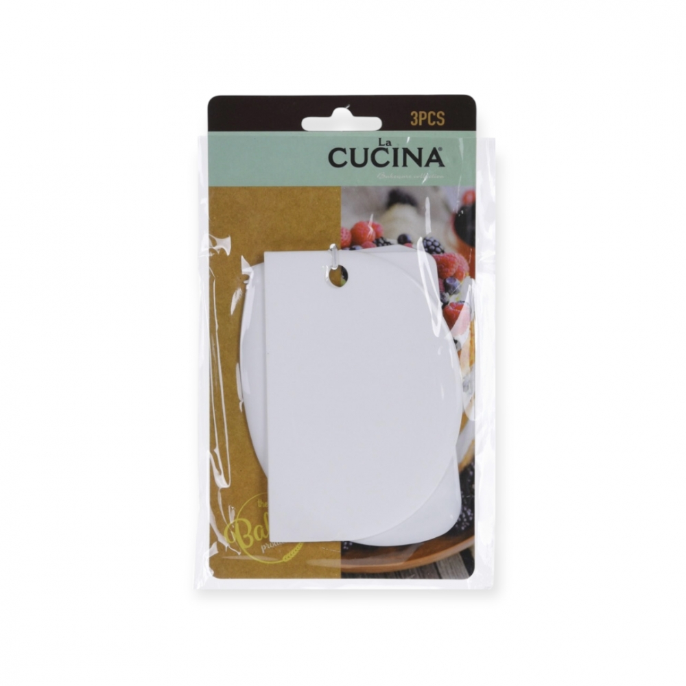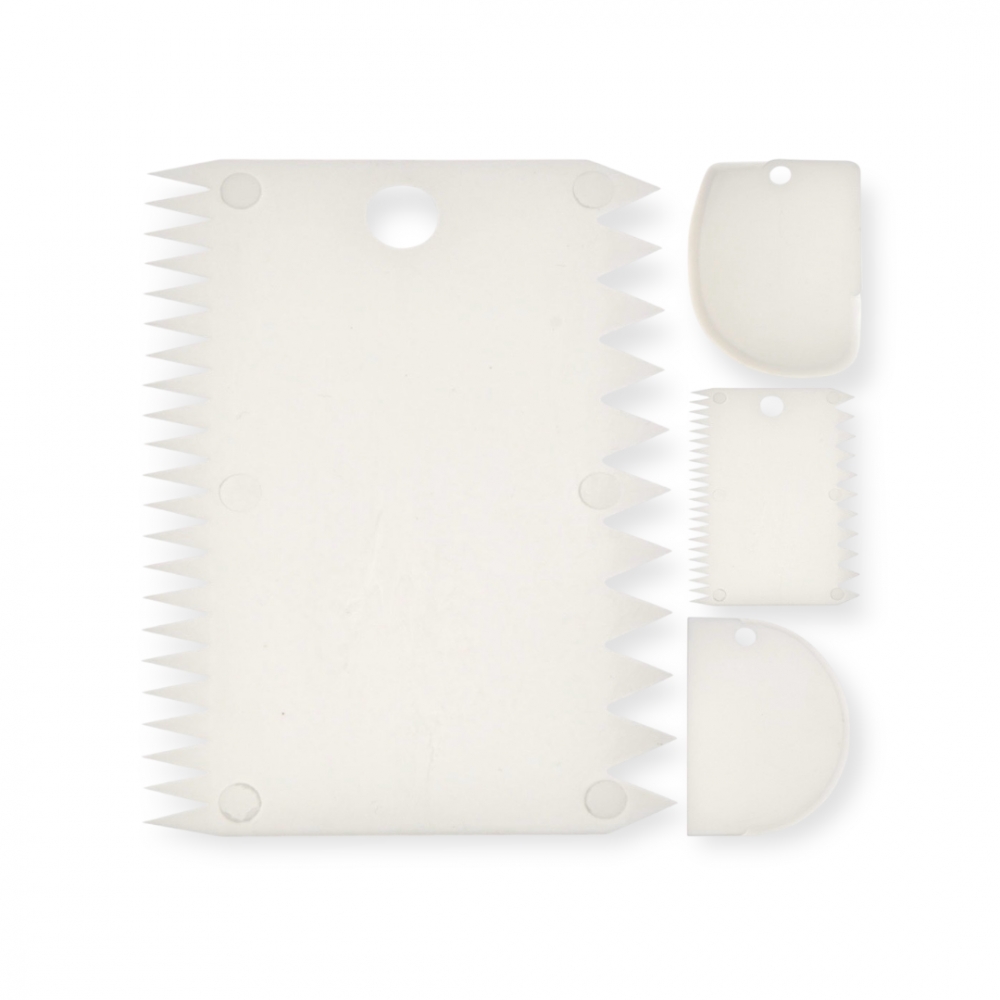 Her får du 3 praktiske bakeredskaper, perfekt for å skrape, jevne og dekorere kaker og desserter. Et uunnværlig verktøy på ethvert kjøkken, hvor det bakes. Testet og godkjent for matlaging. Tåler oppvaskmaskin