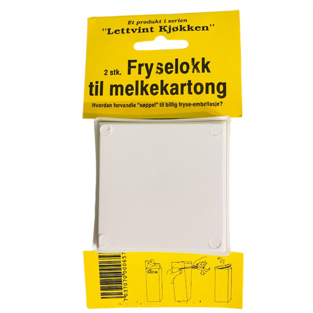 Nå kan du bruke tomme melkekartonger til å fryse ned mat og samtidig spare miljøet. Kutt av toppen på melkekartongen og sett på lokket og du har en rimelig og perfekt fryseembalarsje. Pakken innholder 2 lokk.
