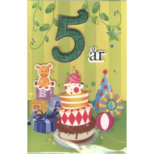 Gratulasjonskort dobbelt med konvolutt 5 år (Innerkartong 5 stk)