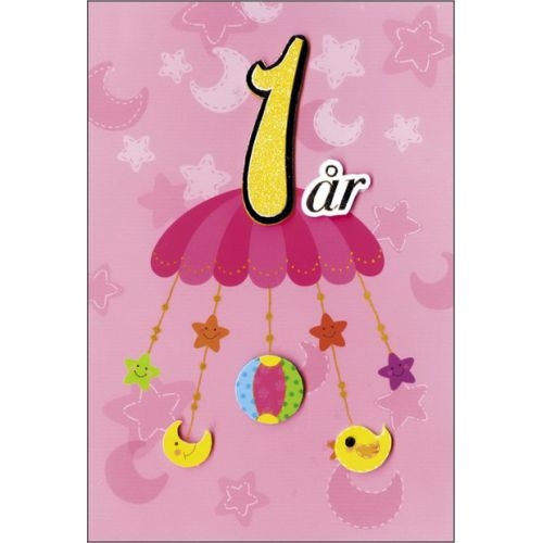 Gratulasjonskort dobbelt med konvolutt 1 år (Innerkartong 5 stk)