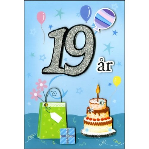 Gratulasjonskort dobbelt med konvolutt 19 år (Innerkartong 5 stk)