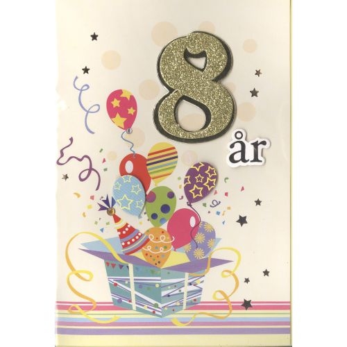 Gratulasjonskort dobbelt med konvolutt 8 år (Innerkartong 5 stk)