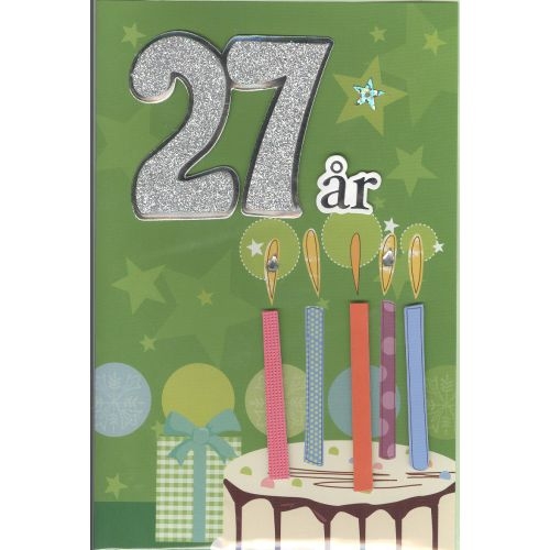 Gratulasjonskort dobbelt med konvolutt 27 år (Innerkartong 5 stk)