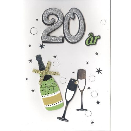 Gratulasjonskort dobbelt med konvolutt 20 år (Innerkartong 5 stk)