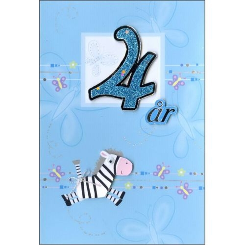 Gratulasjonskort dobbelt med konvolutt 4 år (Innerkartong 5 stk)