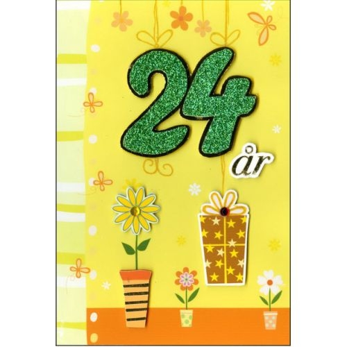Gratulasjonskort dobbelt med konvolutt 24 år (Innerkartong 5 stk)