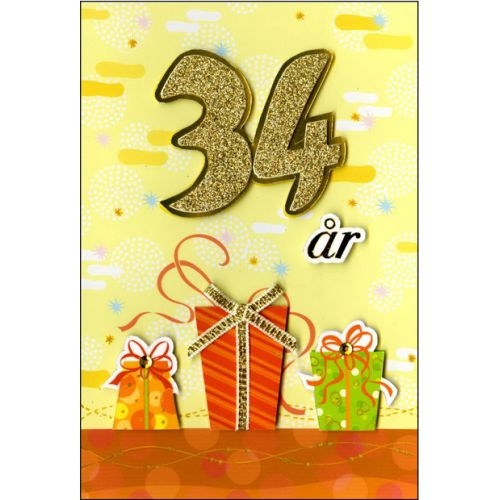 Gratulasjonskort dobbelt med konvolutt 34år (Innerkartong 5 stk)
