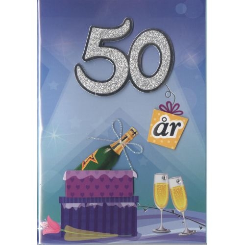 Gratulasjonskort dobbelt med konvolutt 50 år (Innerkartong 5 stk)