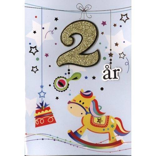 Gratulasjonskort dobbelt med konvolutt 2 år (Innerkartong 5 stk)