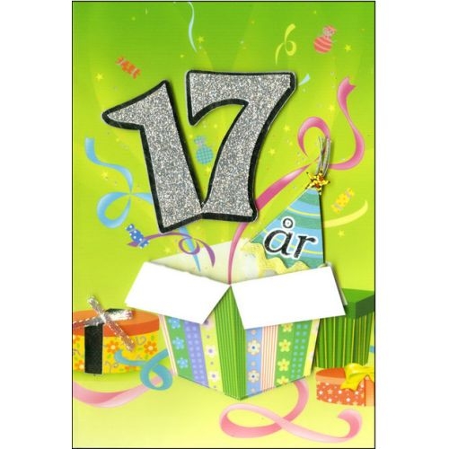 Gratulasjonskort dobbelt med konvolutt 17 år (Innerkartong 5 stk)