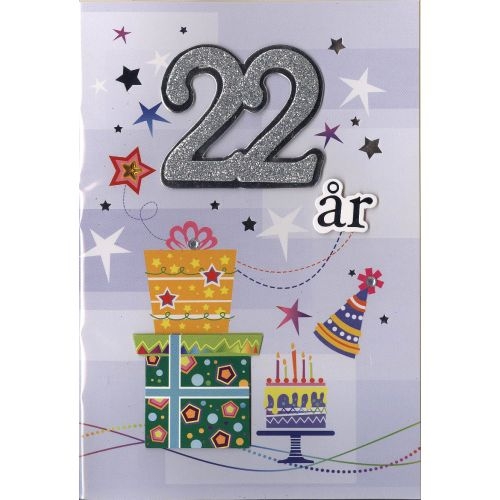 Gratulasjonskort dobbelt med konvolutt 22 år (Innerkartong 5 stk)