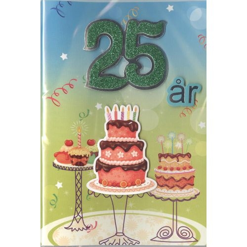 Gratulasjonskort dobbelt med konvolutt 25 år (Innerkartong 5 stk)