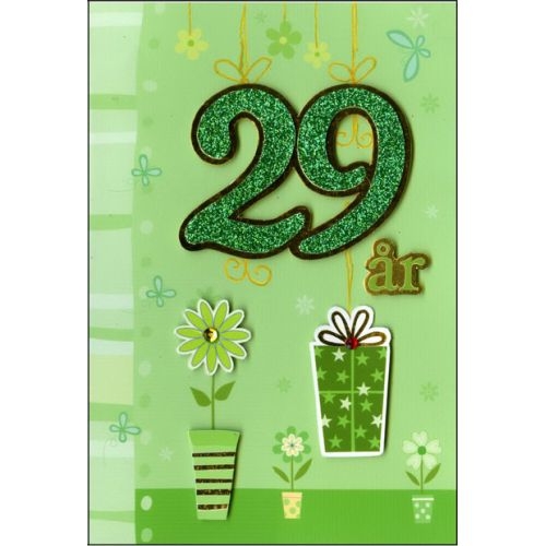 Gratulasjonskort dobbelt med konvolutt 29 år (Innerkartong 5 stk)