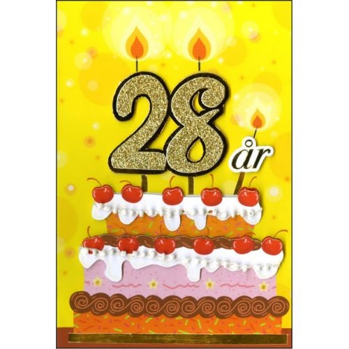 Gratulasjonskort dobbelt med konvolutt 28 år (Innerkartong 5 stk)