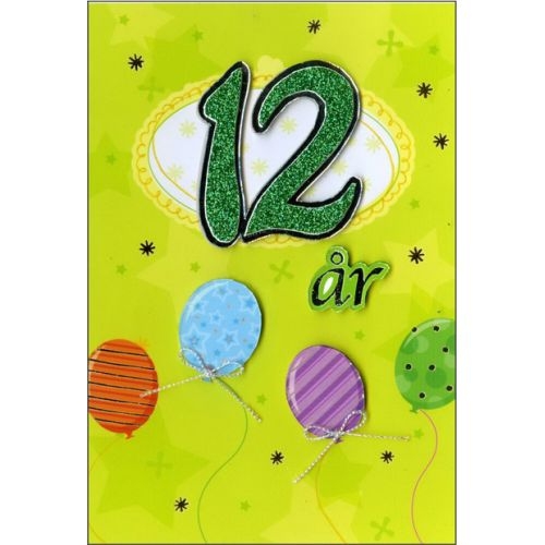 Gratulasjonskort dobbelt med konvolutt 12 år (Innerkartong 5 stk)
