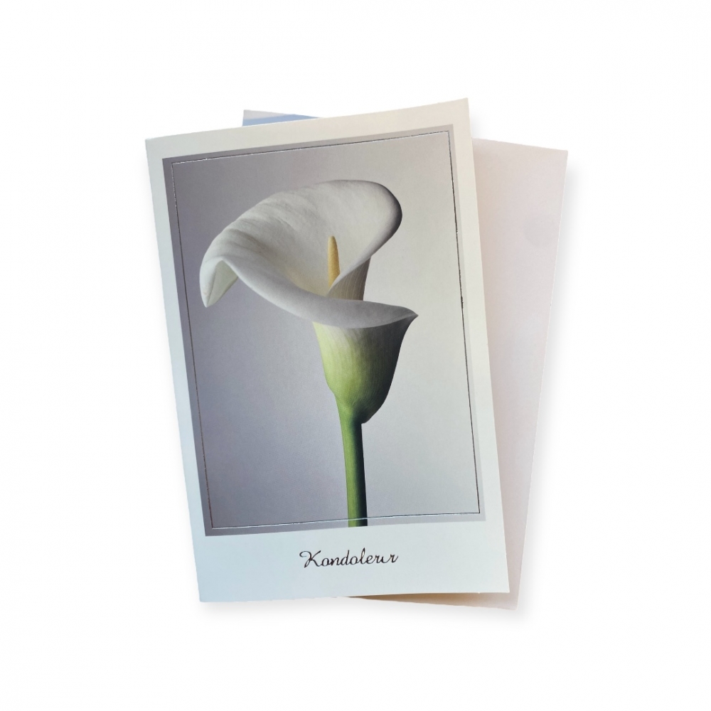 Kondolansekort dobbelt med konvolutt (Innerkartong 6 stk) PrisNOK7,50 ekskl. mva. Kjøp Lekkert kondolansekort med lilje og sølvfargede detaljer. Tekst: Kondolerer. Nøytral innside