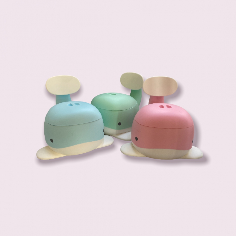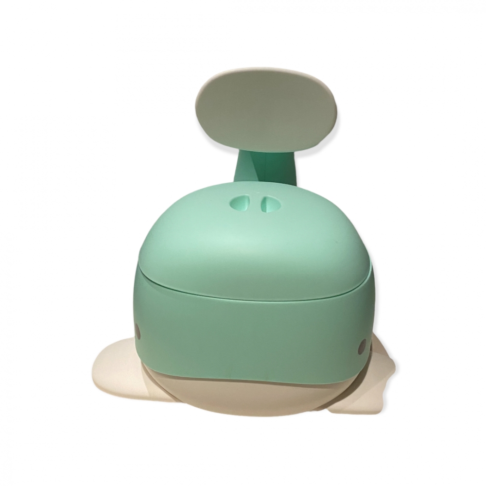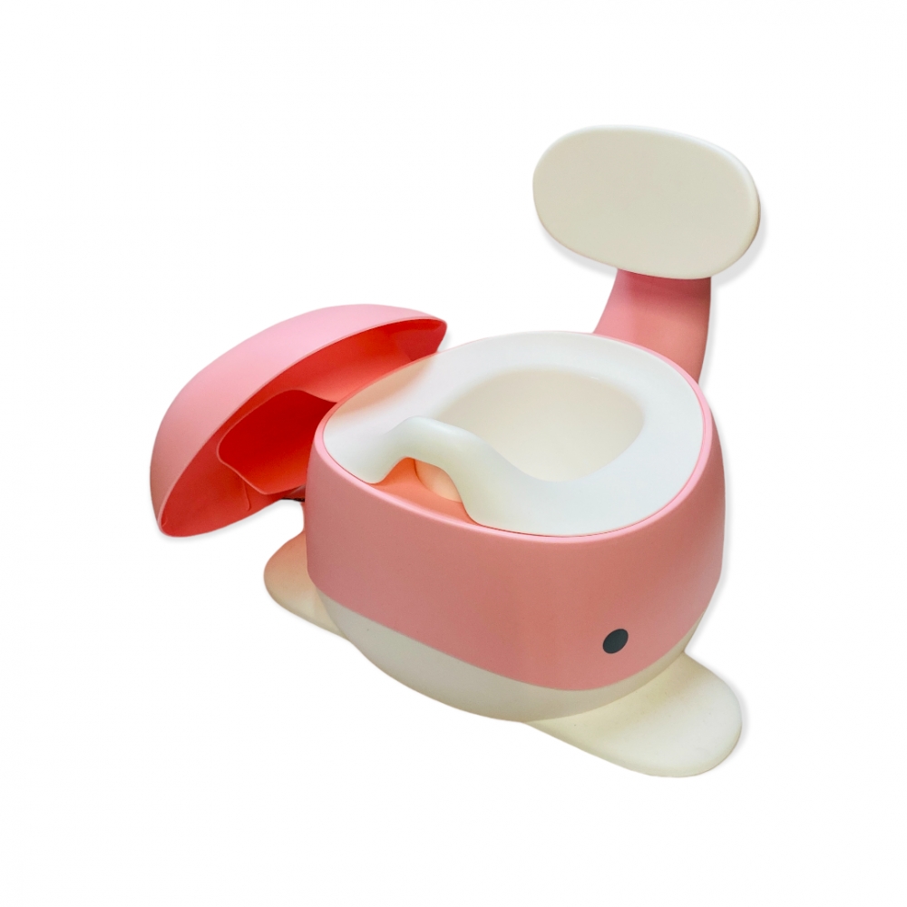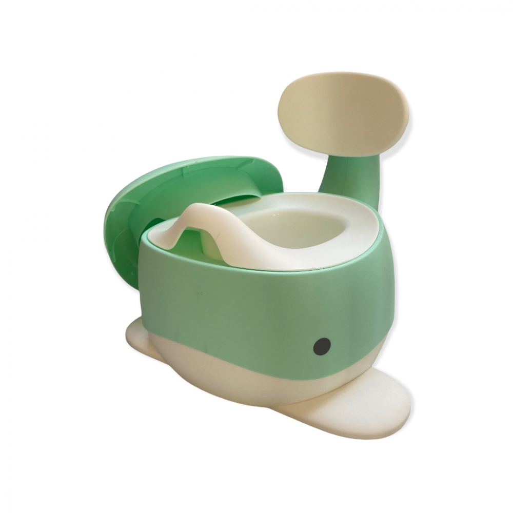 Eksklusiv barnepotte, formet som en hval, hvor halen er ryggstøtte, selve potten kan enkelt taes ut for tømming. Har lokk. Tilsvarende selges for ca. kr. 400,-
