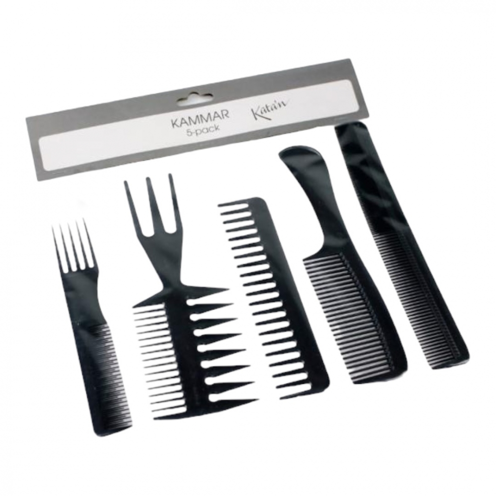 Velasortert sett med kammer, 5 stk, to med flere funksjoner, som passer perfekt til frisering