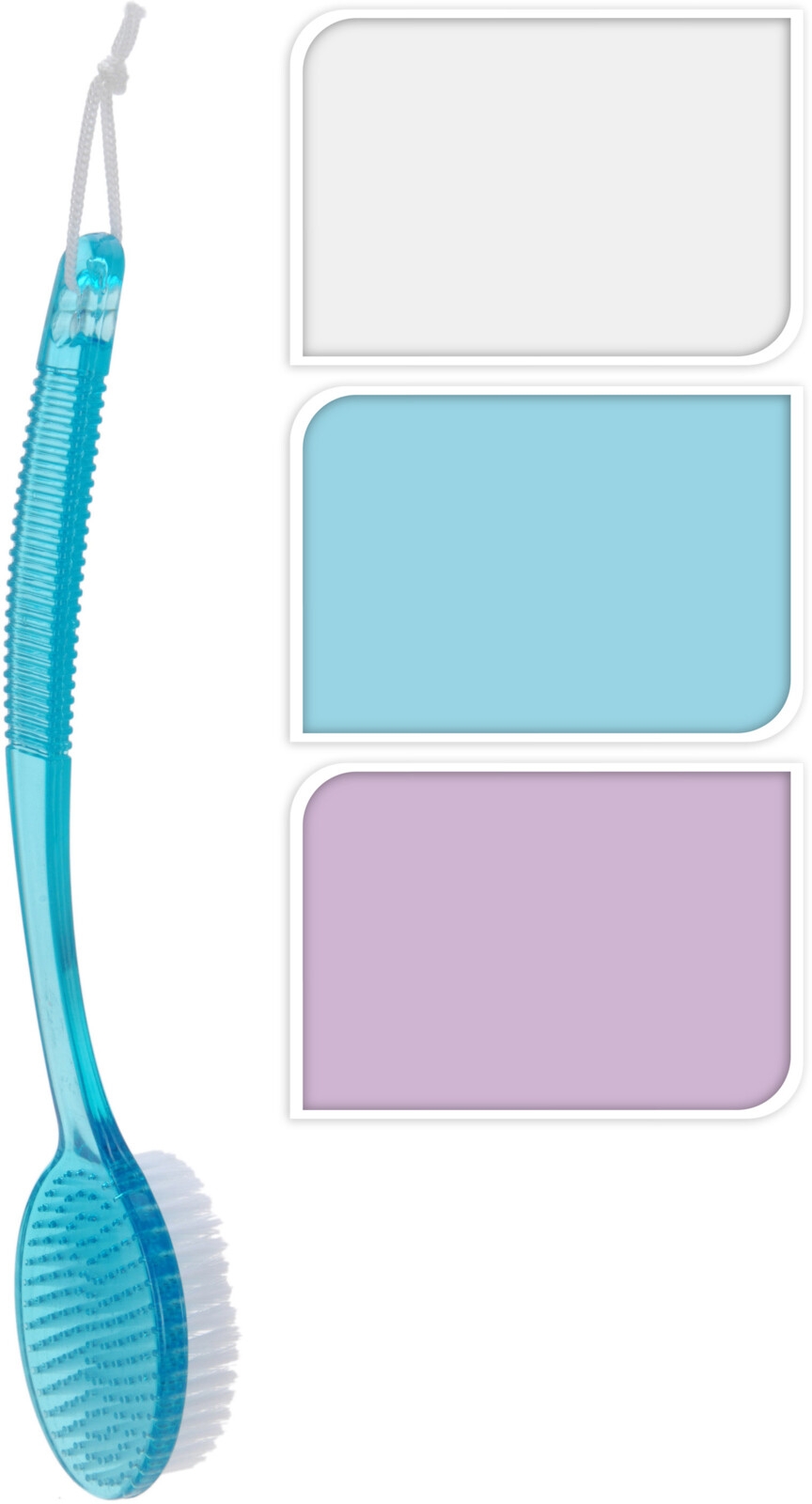 Flott badebørste fra Bathroom solutions. Kommer i: Lys blå, lilla og tranparent