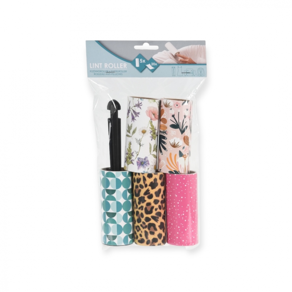 Her får du 5 klesruller a 20 ark, samt et håndtak. Praktisk til å fjerne hår og smuss fra klær og møbler!
