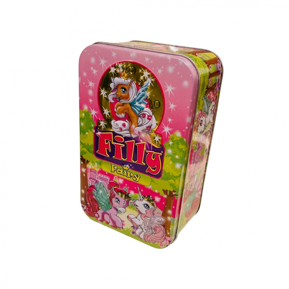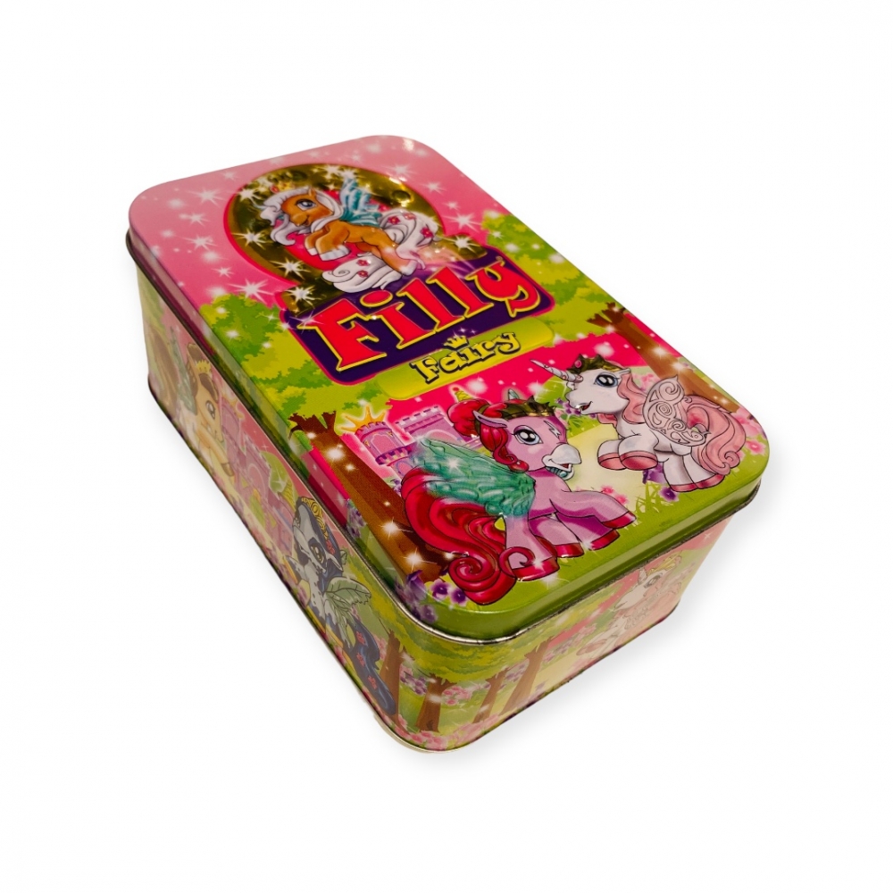 Lekker oppbevaringsboks I Metall Enhjørning fra Filly. Den måler ca. 17x11x6,5 cm.