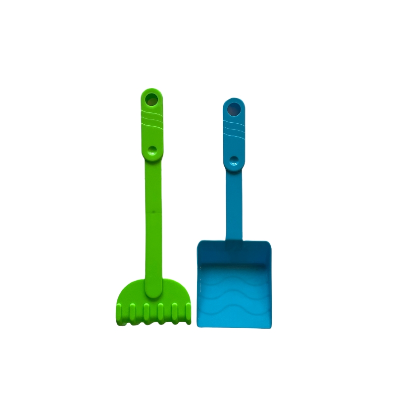 Sett med spade og rake, perfekt til stranden eller sandkassen.