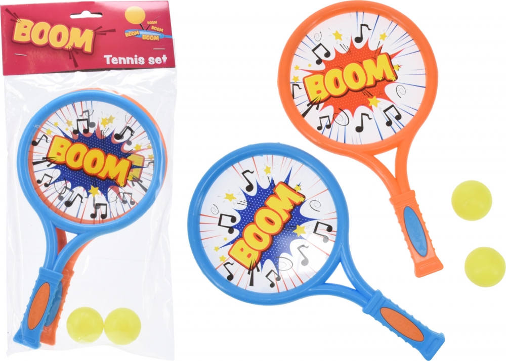 2 racketer og 2 baller. (racketene er 25 cm lange, ballene er ca. 3,5 cm i diameter)