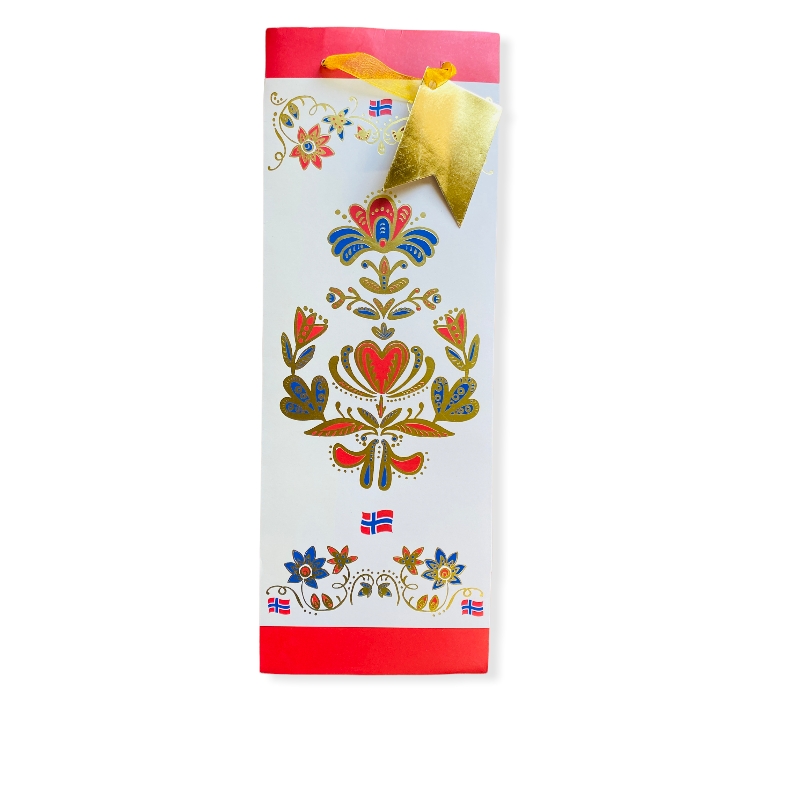 Lekker vinpose med norske flagg ca. 35x13x8 cm