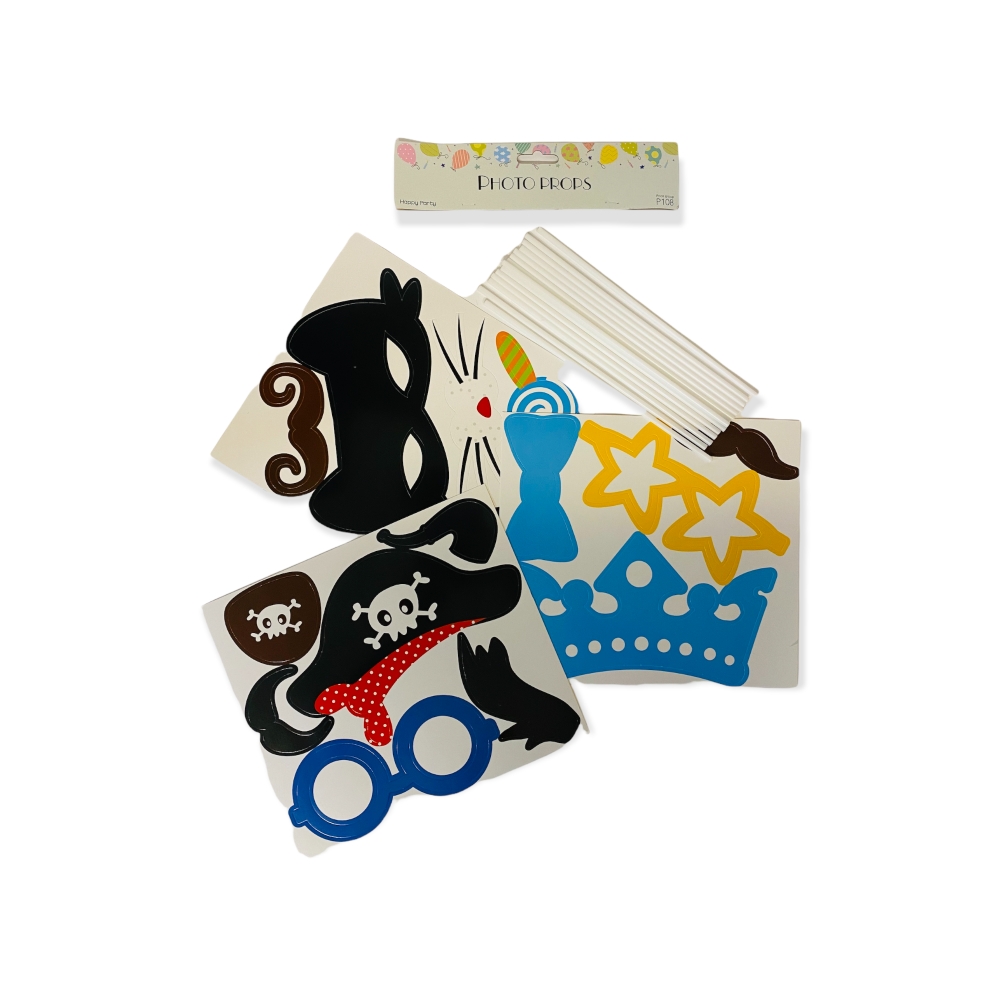 Lag morsomme bilder/selfier! 3 stive ark med morsomme effekter. 15 stk(stanset ut) 15 stenger til å feste på de enkelte produktene, for å holde de foran ansiktet.