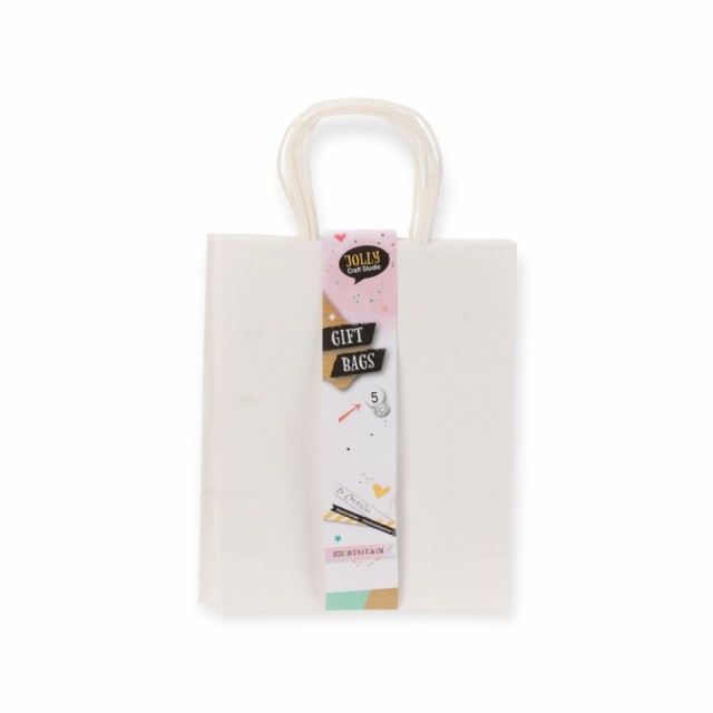 Dekorer din egen gavepose! Her får du 5 hvite gaveposer som du kan dekorere med feks dekortusjer og julestickers. Størrelse: 26 x 20 x 8,5cm