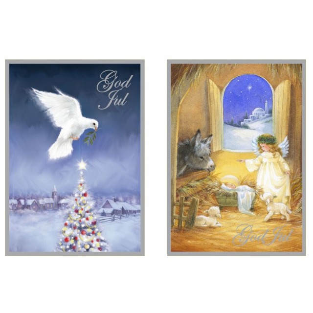 Julekort doble med konvolutt 6 pk. Engel/due (Innerkartong 12stk)