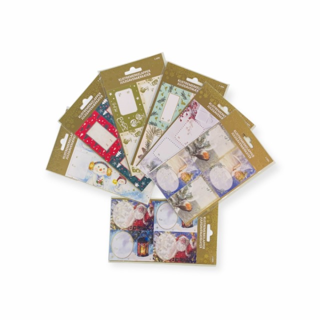 Julemerkelapper 8 pk pakke med 24 stk ass. (Innerkartong 1 pk. a 24) Superpris!