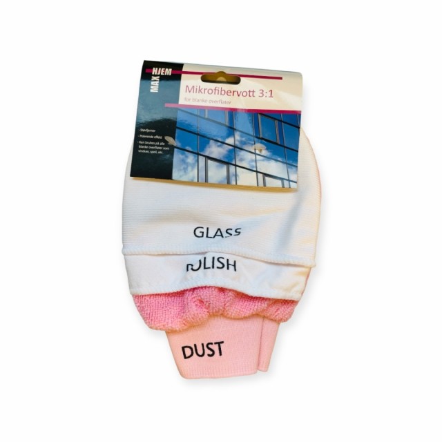 Mikrofibervott 3i1 rengjør effektivt blanke overflater. Tørk først overflaten med støvkluten, brett så over til poleringskluten og poler overflaten. Avslutt med glasskluten for å få et ultimat resultat. Votten kan brukes med kun vann og vaskes på 40grader