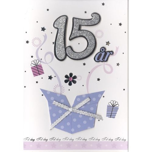 Gratulasjonskort dobbelt med konvolutt 15 år (Innerkartong 5 stk)