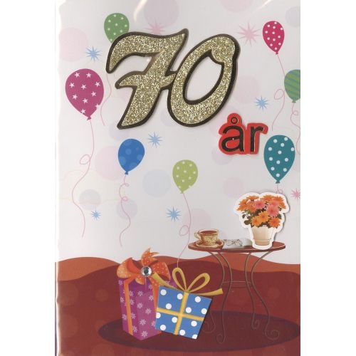Gratulasjonskort dobbelt med konvolutt 70 år (Innerkartong 5 stk)