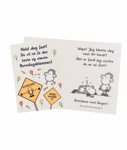 Gratulasjonskort dobbelt med konvolutt "Hold deg fast" (Innerkartong 12stk) Lekkert kort med morsom tekst! PrisNOK6,00 ekskl. mva. På lager: 100+ stk. Antall Kjøp Ønskeliste Lagerstatus: På lager: 100+ stk. Artikkelnr.: B78-1 Del dette Produktanmeldelser (0) Skriv en produktanmeldelse og del dine erfaringer med dette produktet med andre kunder. Email Navn Din vurdering? 1 star 2 star 3 star 4 star 5 star 6 star Oppgi en tittel for anmeldelsen din Skriv inn produktanmeldelsen i feltet under