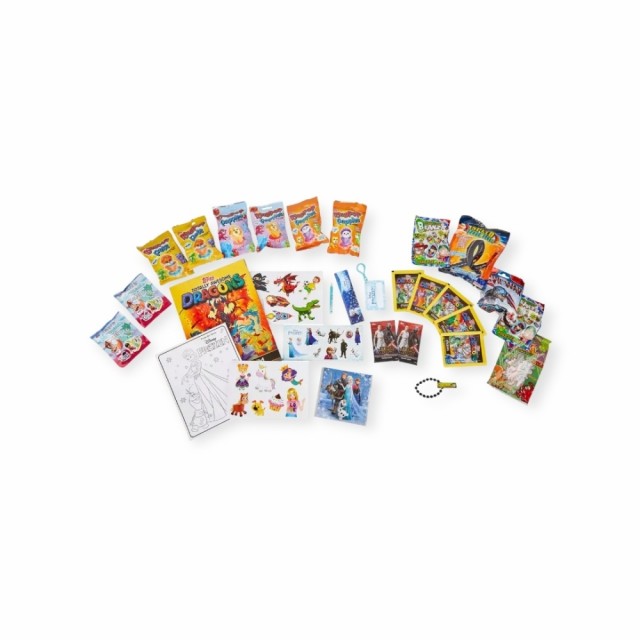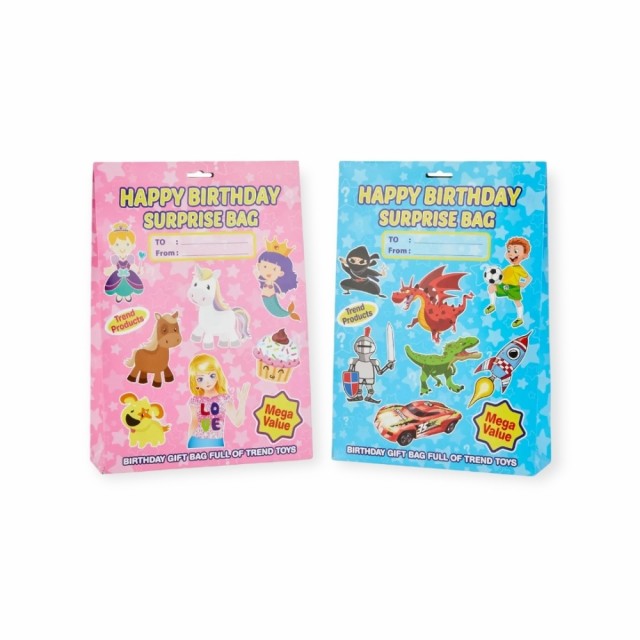 Blanding med 15 morsomme overraskelser som er perfekt til bursdager som barnet ditt skal i. Velg mellom et rosa og blått sett med ulikt innhold. Kan også splittes og brukes som smågaver til permier på ulike basarer, 17 mai osv. Passer alder ca 3-8 år.