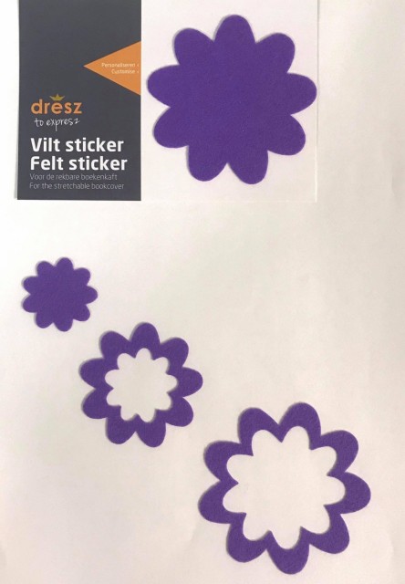 Ett klistremerke i filt som kan deles i tre deler. Kraftig lim som fester godt på de fleste underlag. Passer også godt på elastiske bokomslag.