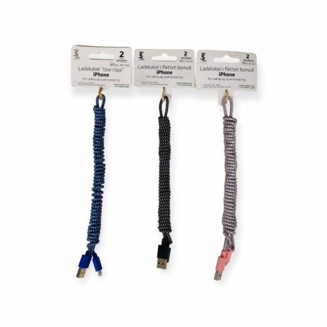 Kvalitetskabel som passer til de fleste iPhone/iPad, med unntak av de nyeste, som bruker C-kabel. For lading og synkronisering. USB til lightning. Leveres i ass. farger, som kan variere fra gang til gang.
