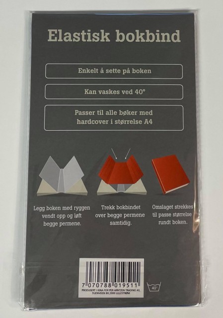 Fleksible og slitesterke bokbind i stoff fra Dresz. Passer de fleste bøker fra ca. A5 til A-4, settes på på kun 10 sekunder. Vaskbare på 40 grader. For bøker med myk perm anbefales det å legge inn en pappskive før du setter det på. Kan brukes om igjen.