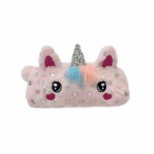 Oppbevar dine skrivesaker med stil i dette søte posepennalet, komplett med glitrende enhjørninghorn, ører og øyne. Plysjpelsen er prydet med sølvfargede foliehjerter, og måler 21x8x9 cm. Din nye favoritt for skoleåret!
